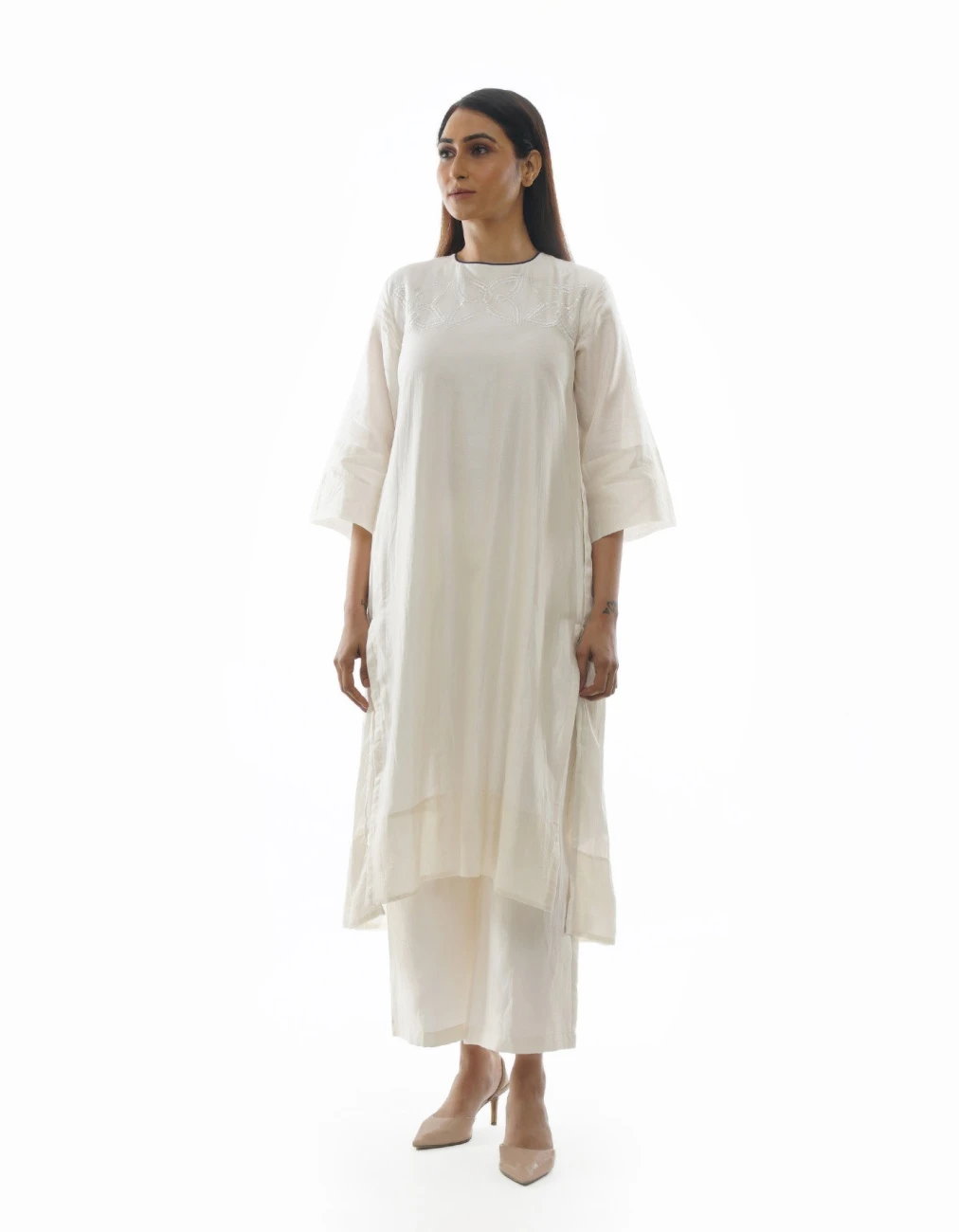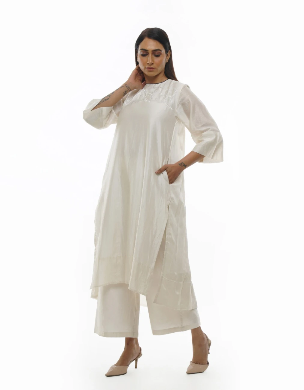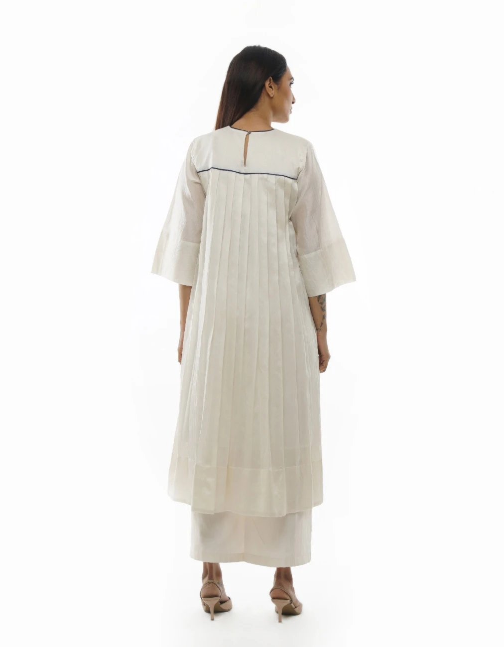- Bright White Chanderi Embroidery & Pleated Dress Co-ord
