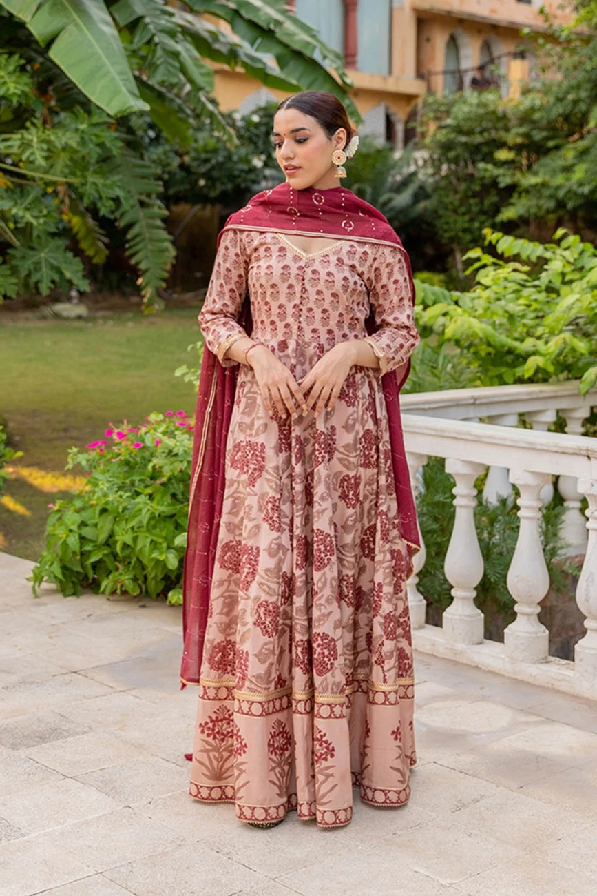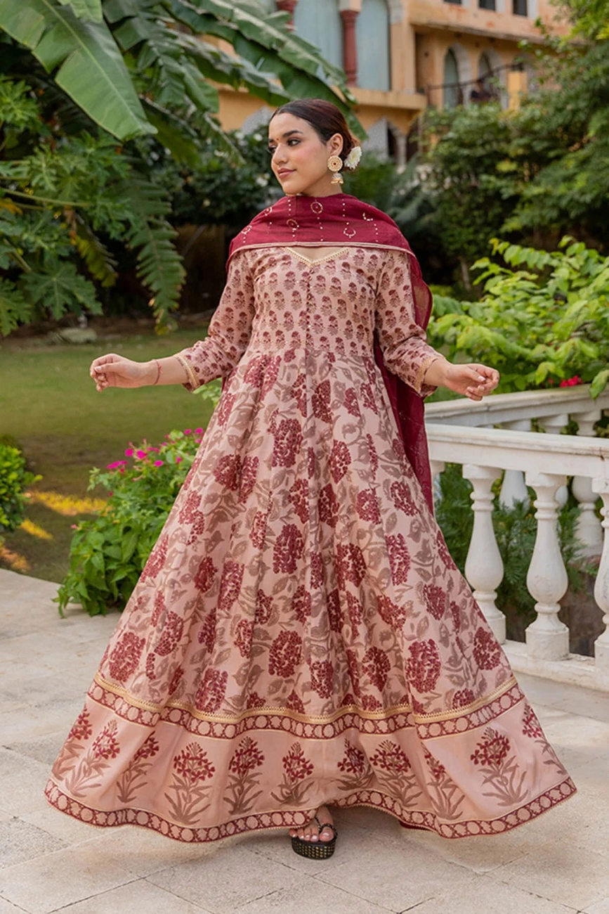Printed Muslin Dress Has An Thread Embroidery Paired With Thread Embroidery And Thread Emb Belt