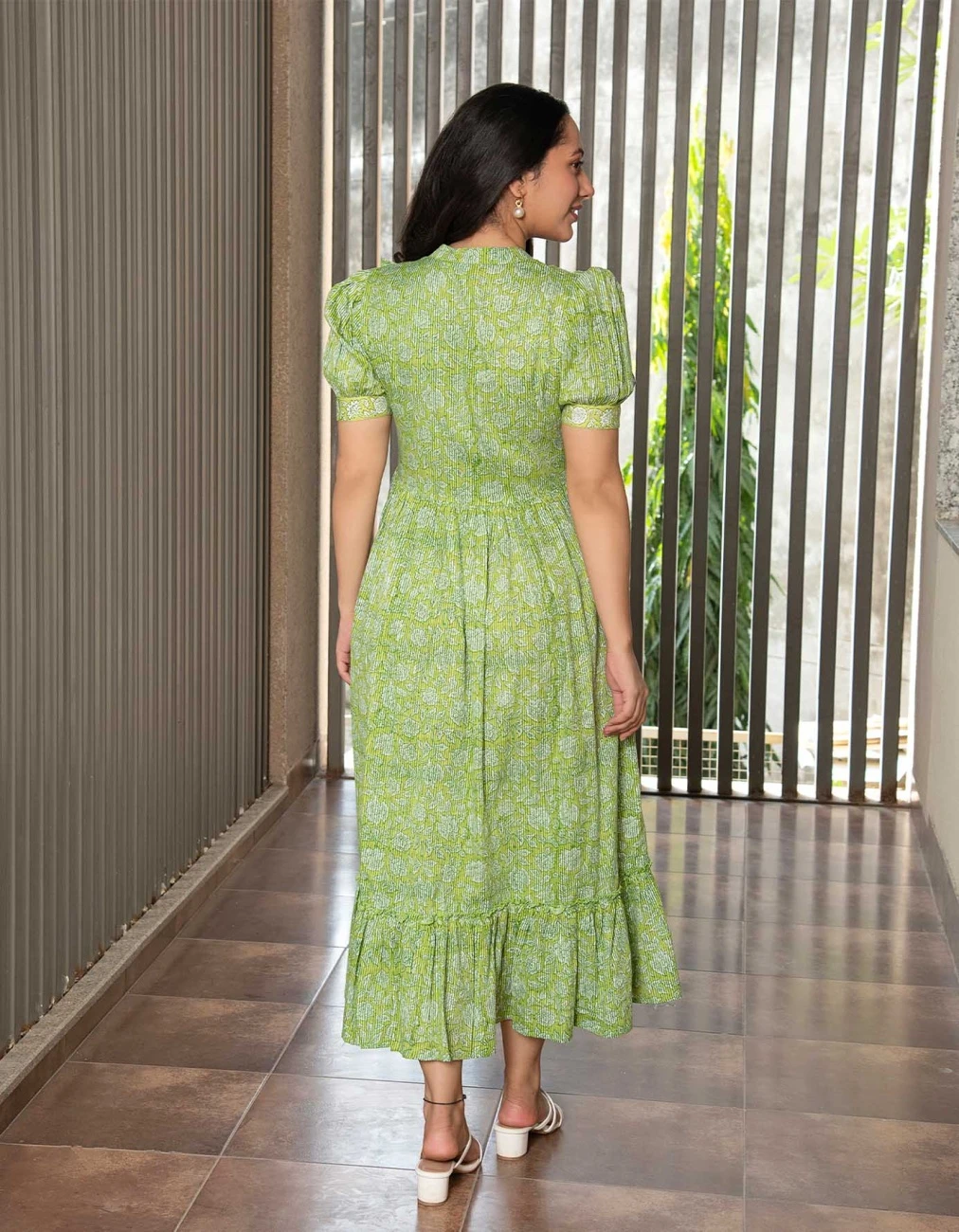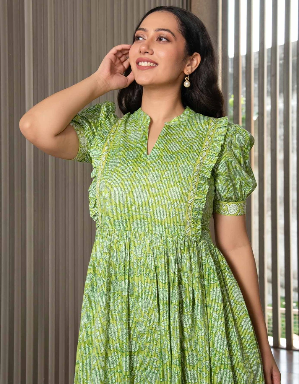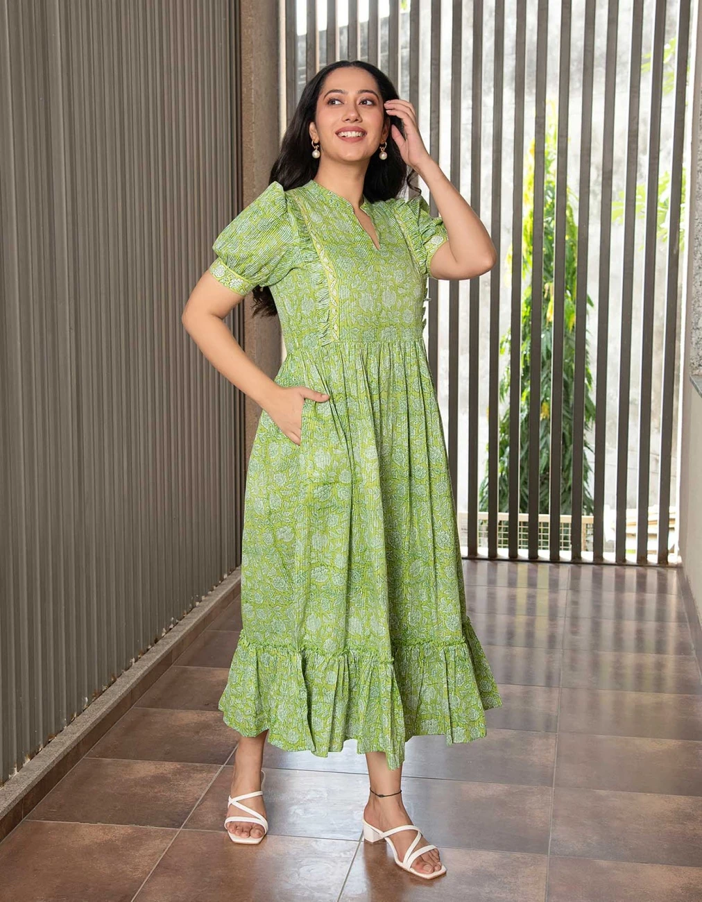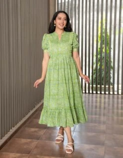 - Green Floral Jaal Block Printed Dress