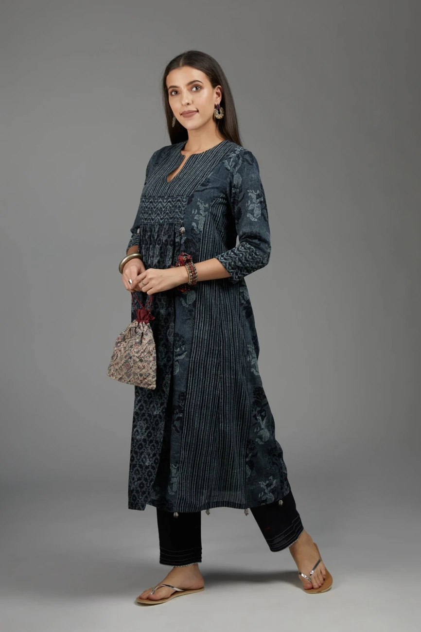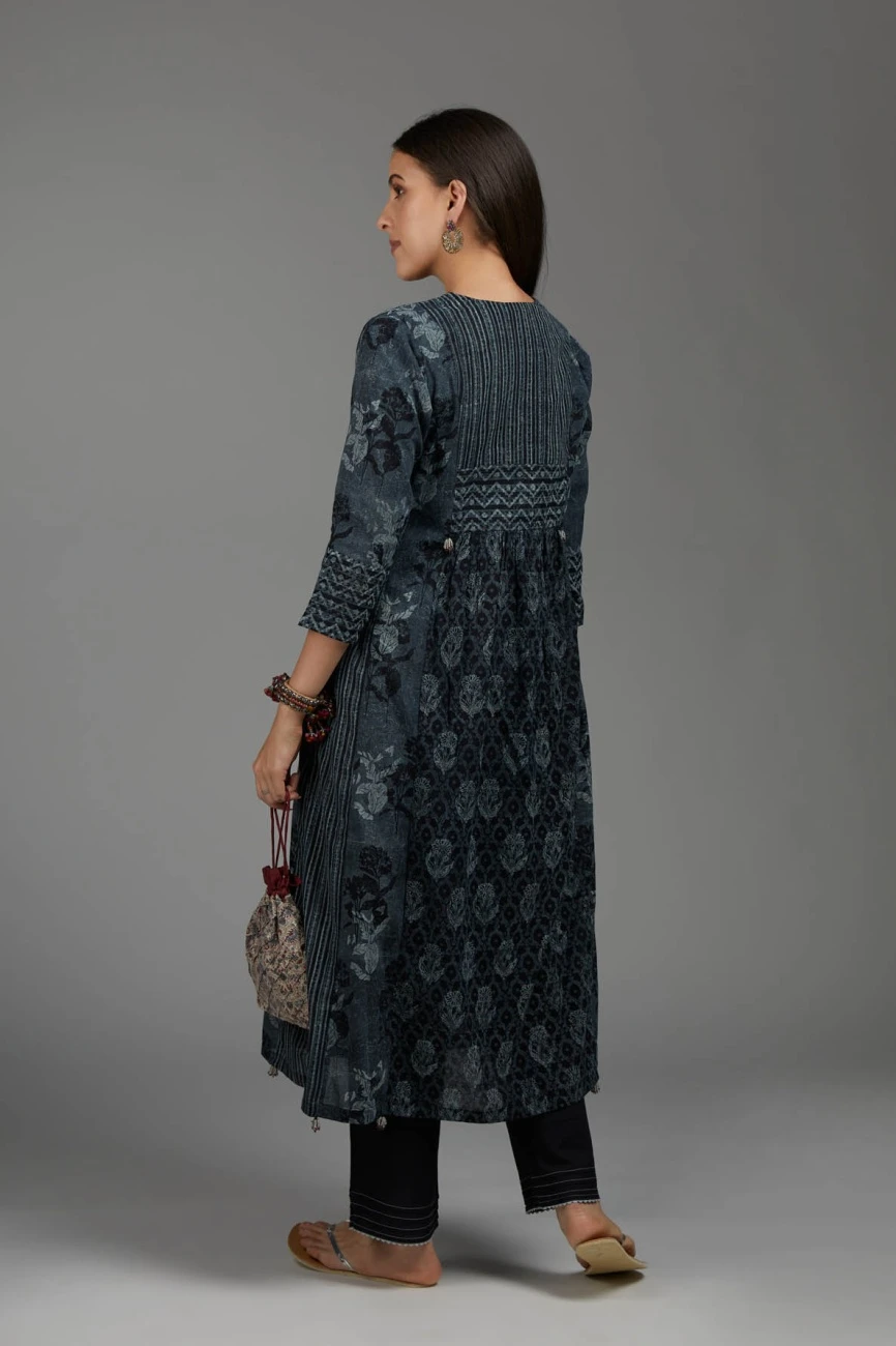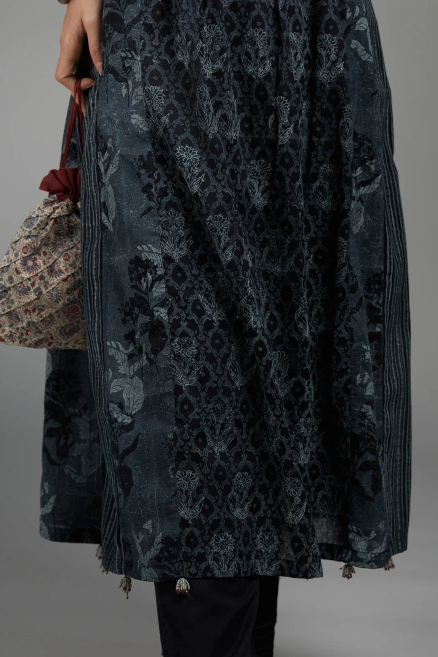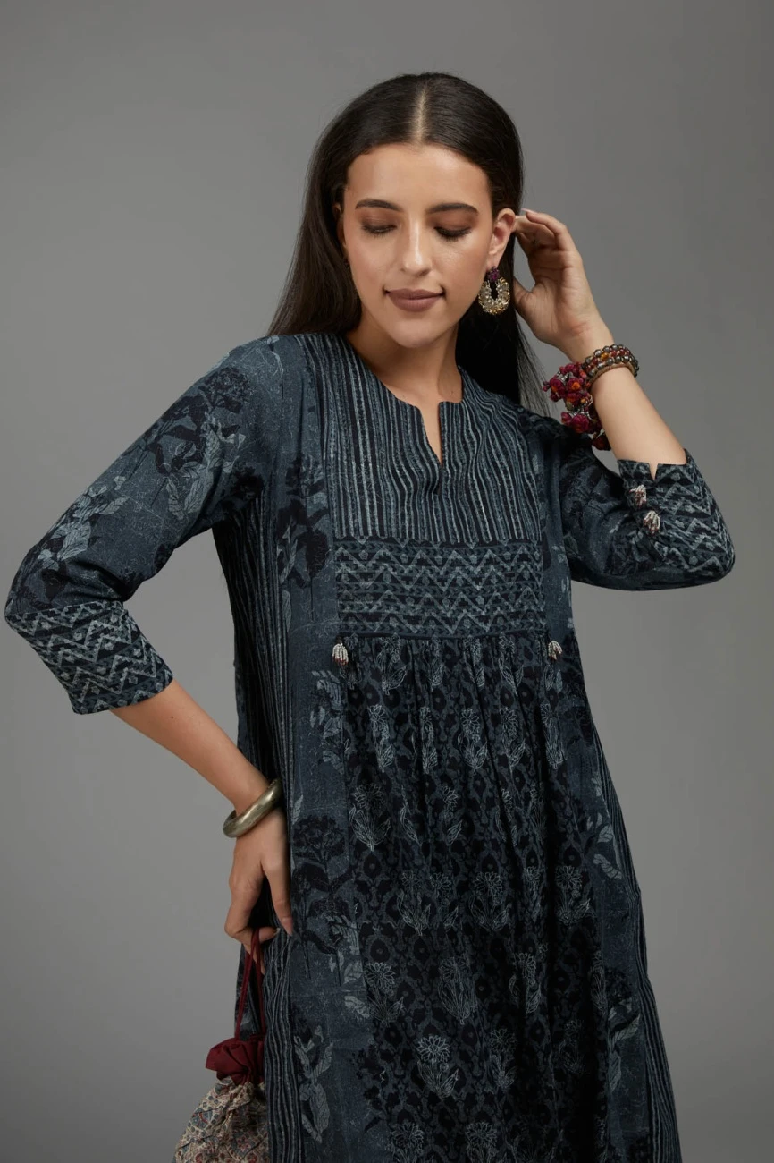 - Hand Block Printed Kurta Dress Set Featured With Beaded Tassels