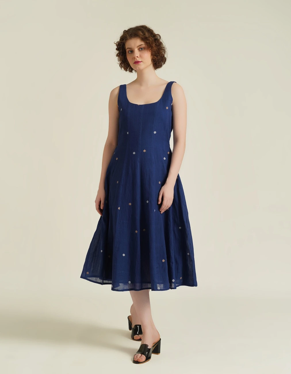 - Handwoven Jamdani Deep square neck fit and flare dress