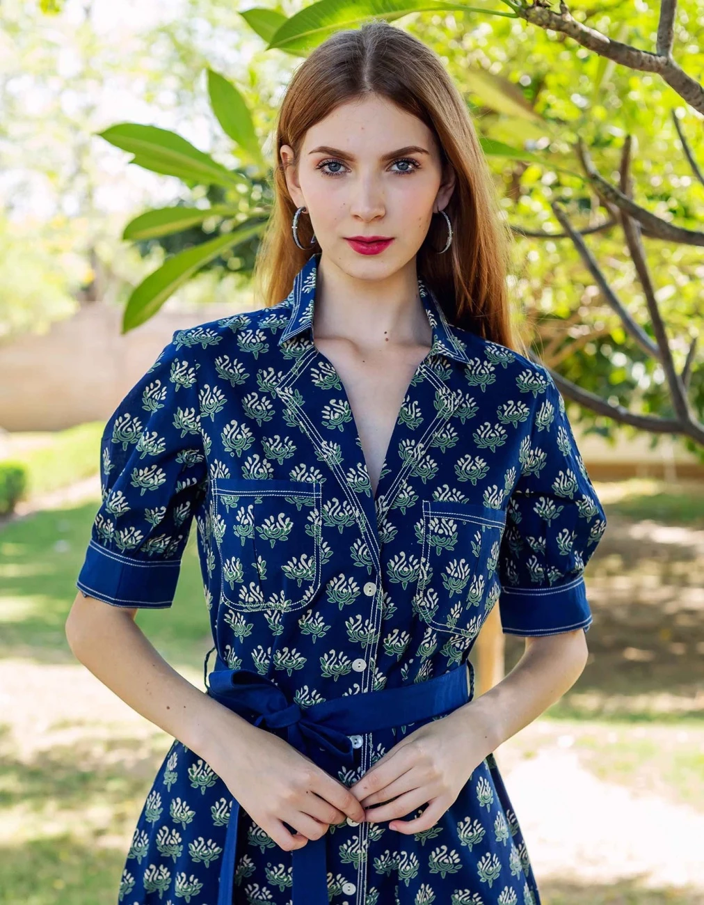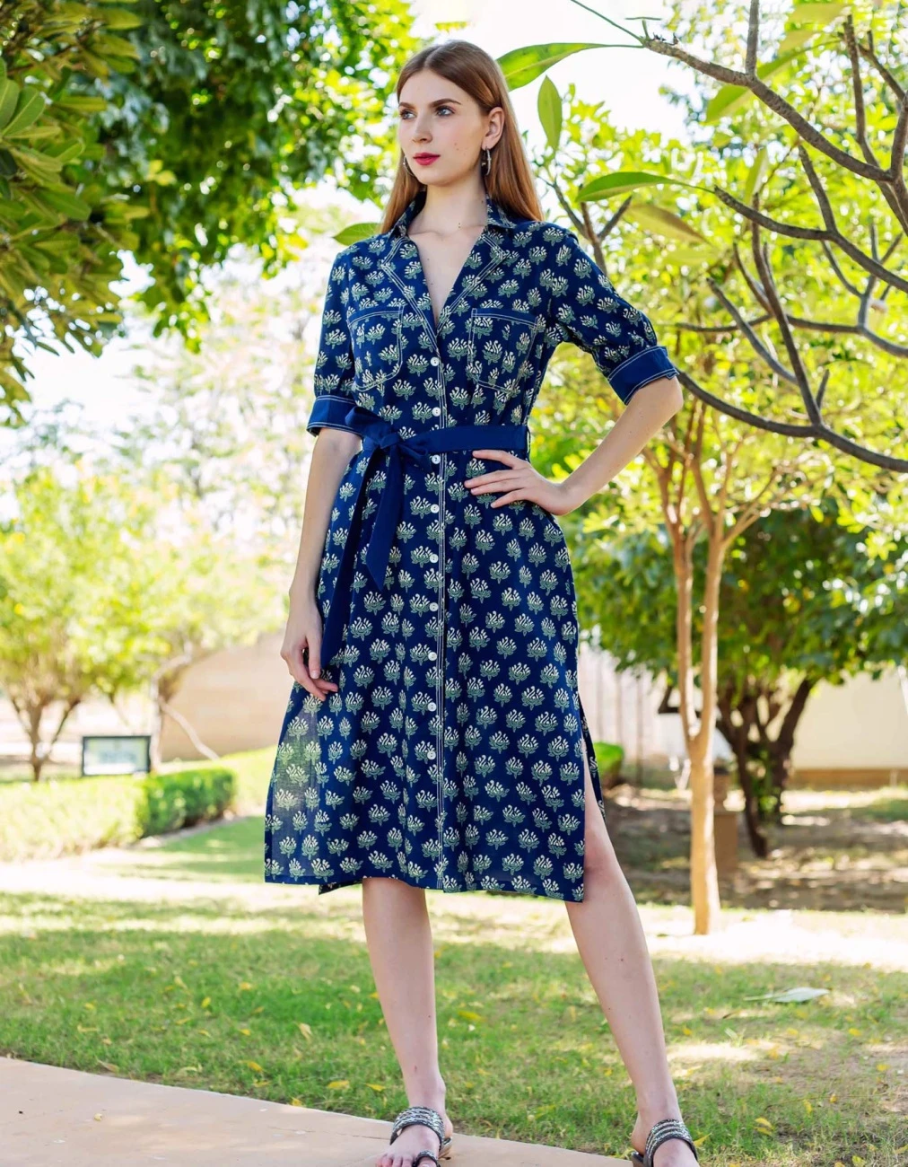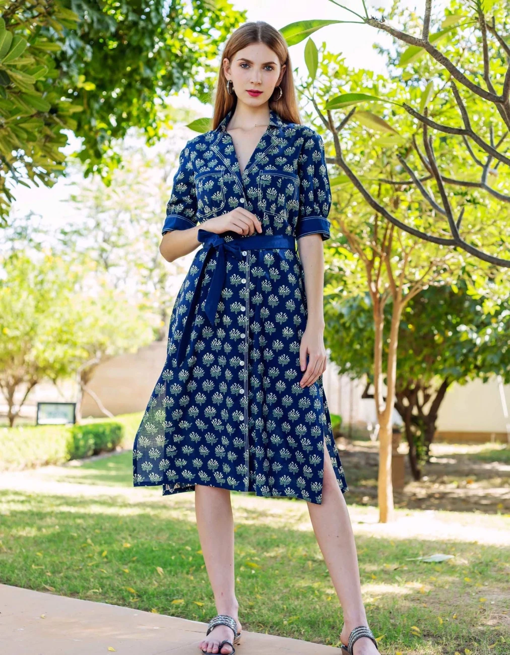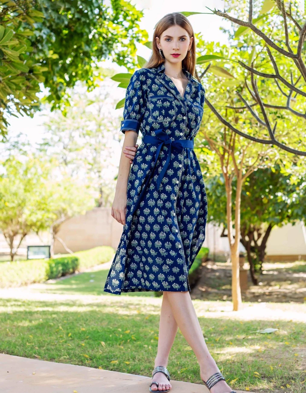 - Indigo Hand Block Printed Dress
