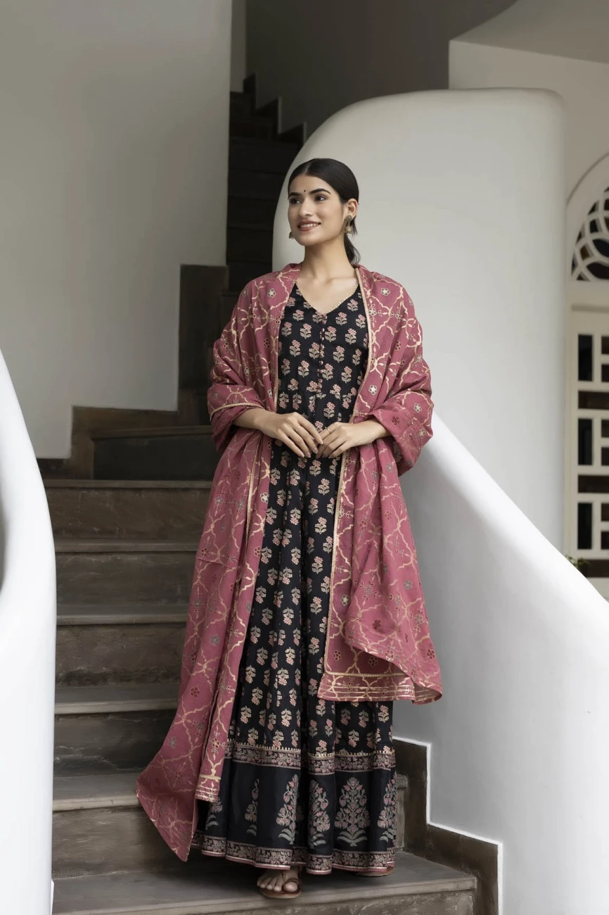 - KUSHA ANARKALI DRESS DUPATTA SET