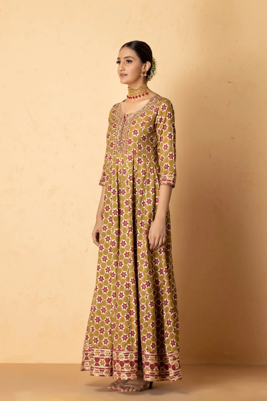 Be the first to review “Mehndi Green Abstract Printed Maxi Dress With Printed Dupatta” Cancel reply