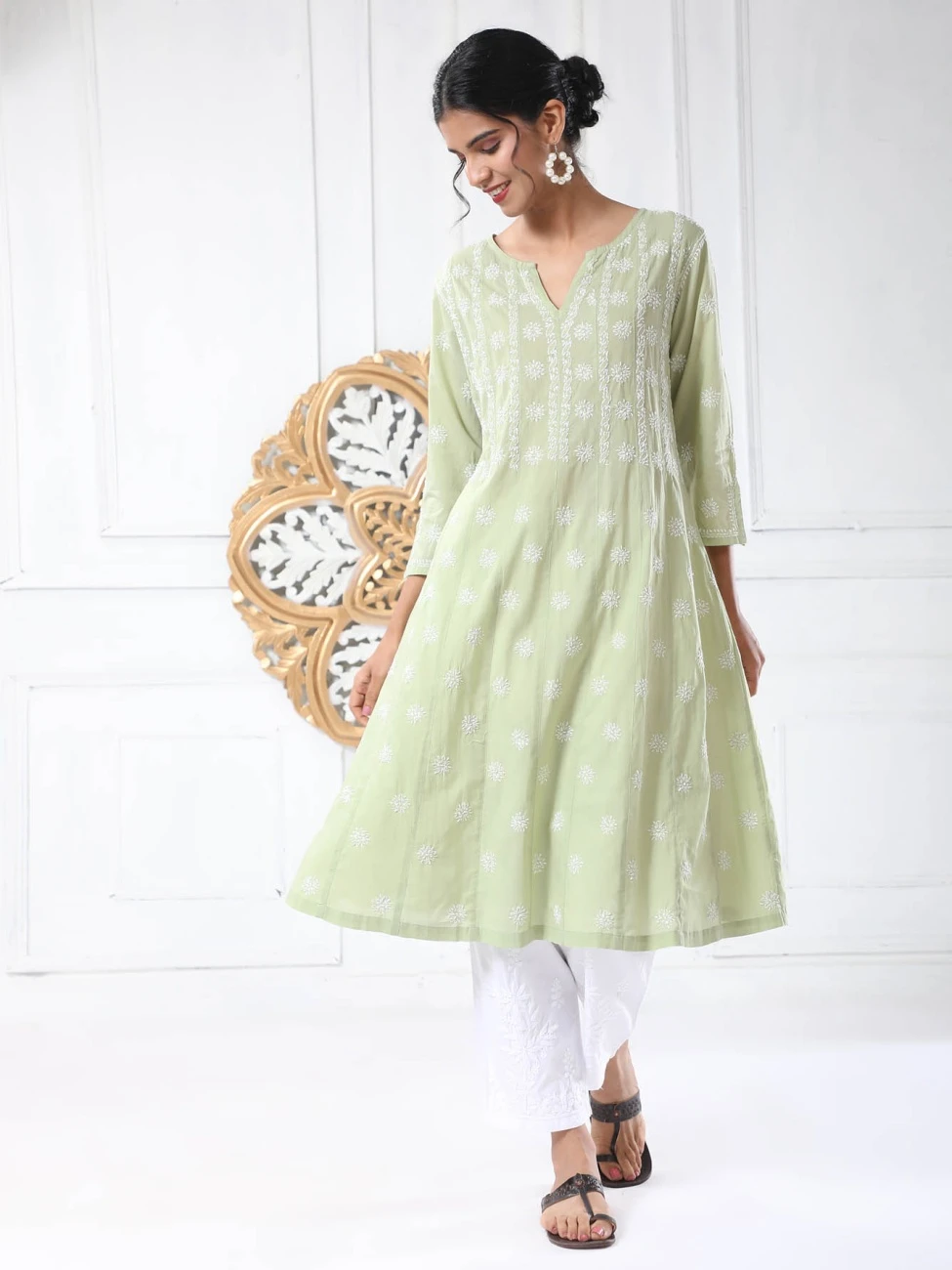 Be the first to review “Noor Chikankari Hand Embroidery Anarkali Dress In Cotton Green” Cancel reply