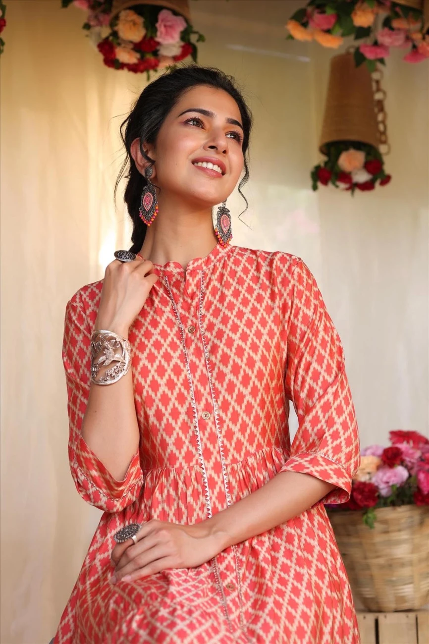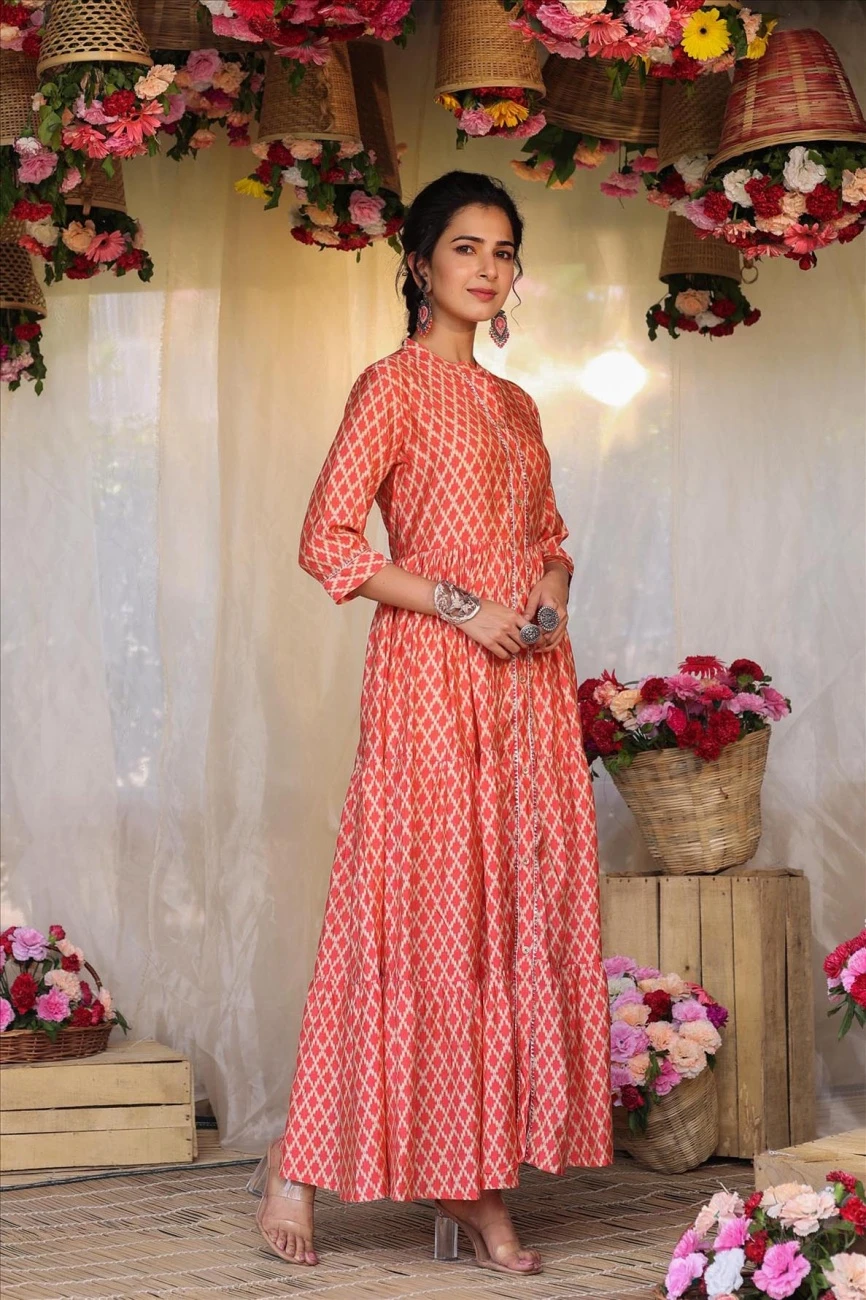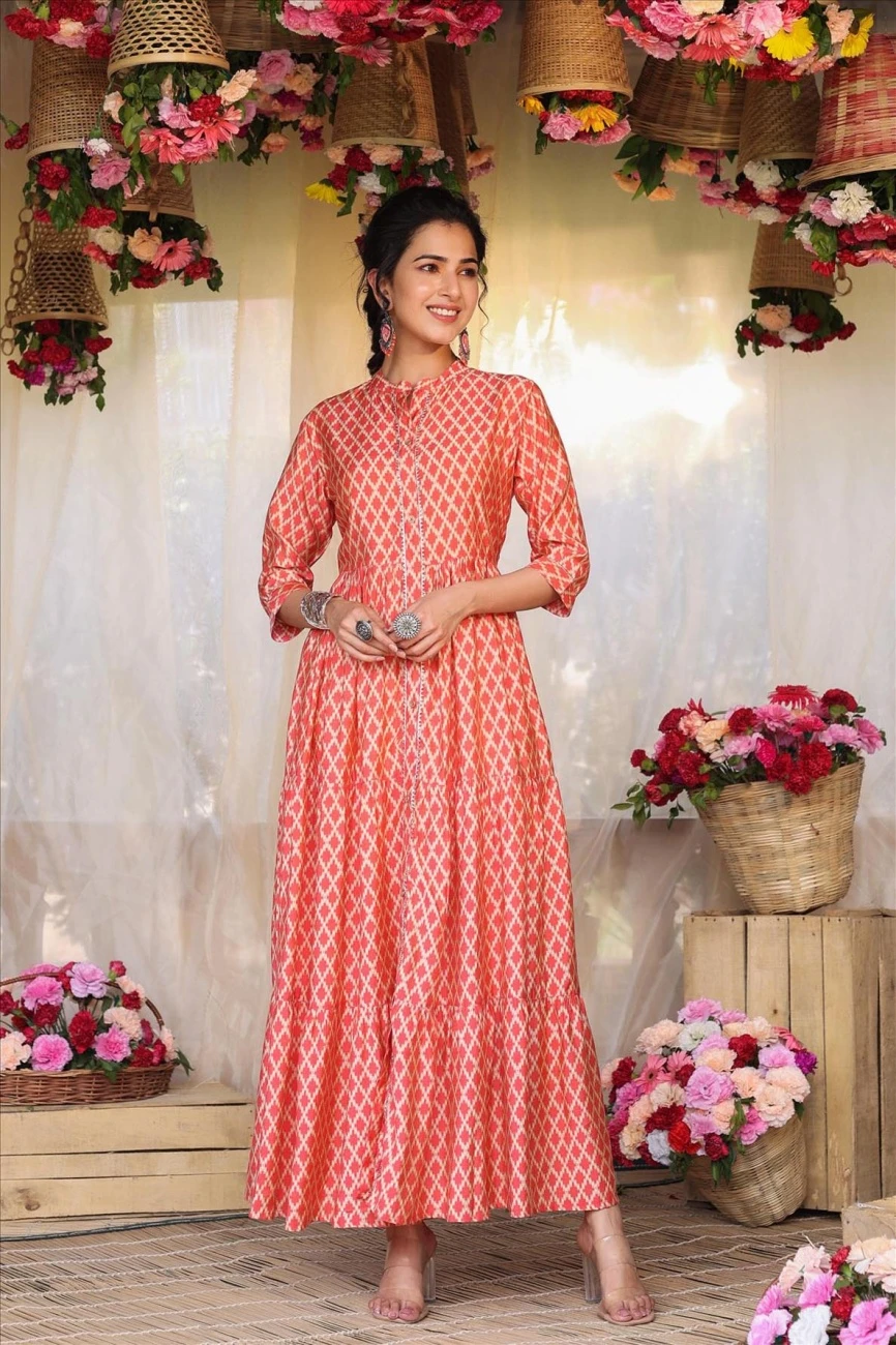 - Orange Modal Chevron Print Gotta Tiered Flare Kurta Dress