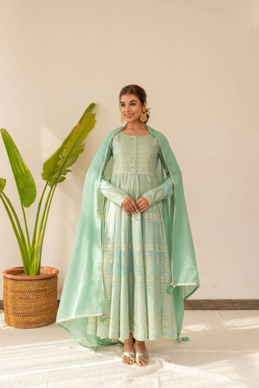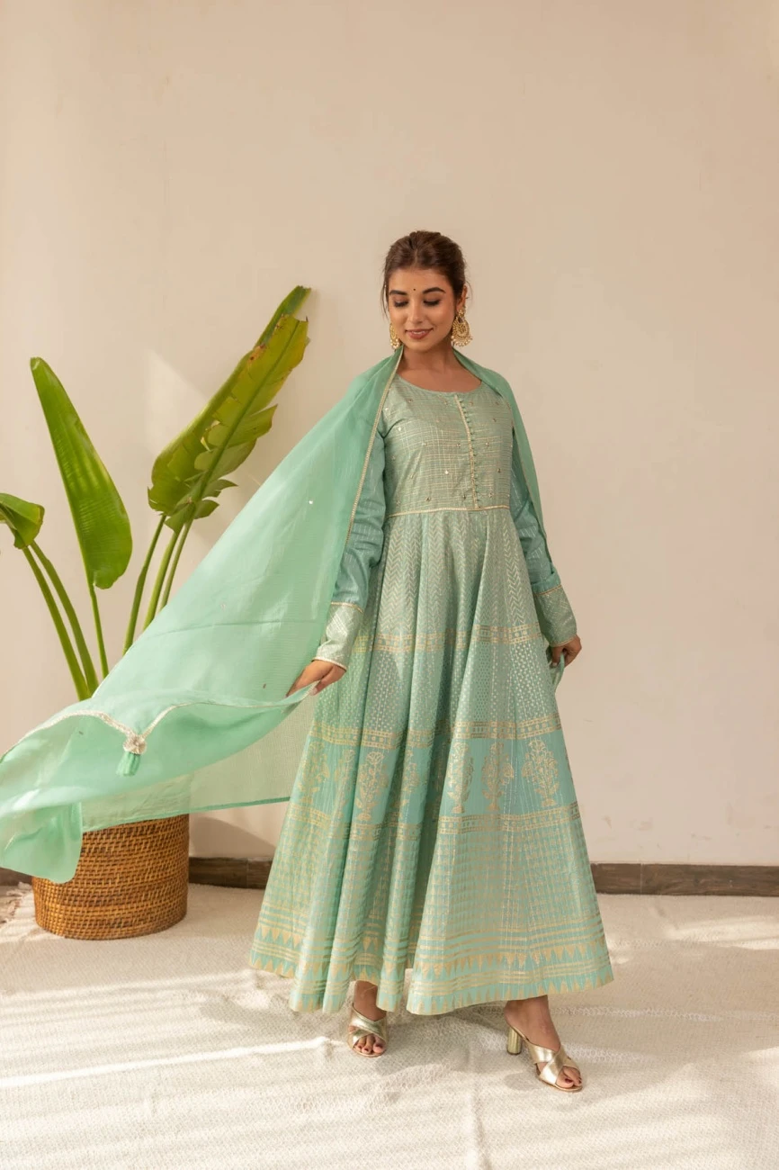 Printed Muslin Dress Has An Thread Embroidery Paired With Thread Embroidery And Thread Emb Belt