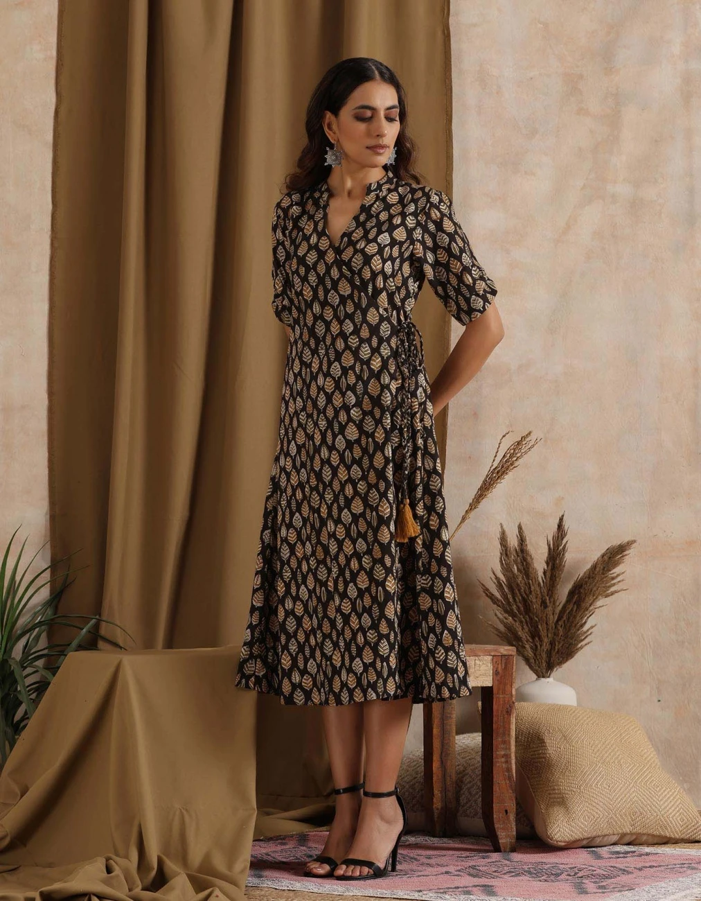 - Patjhad- Leaf Print Wrap Dress