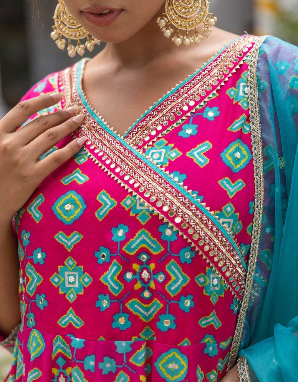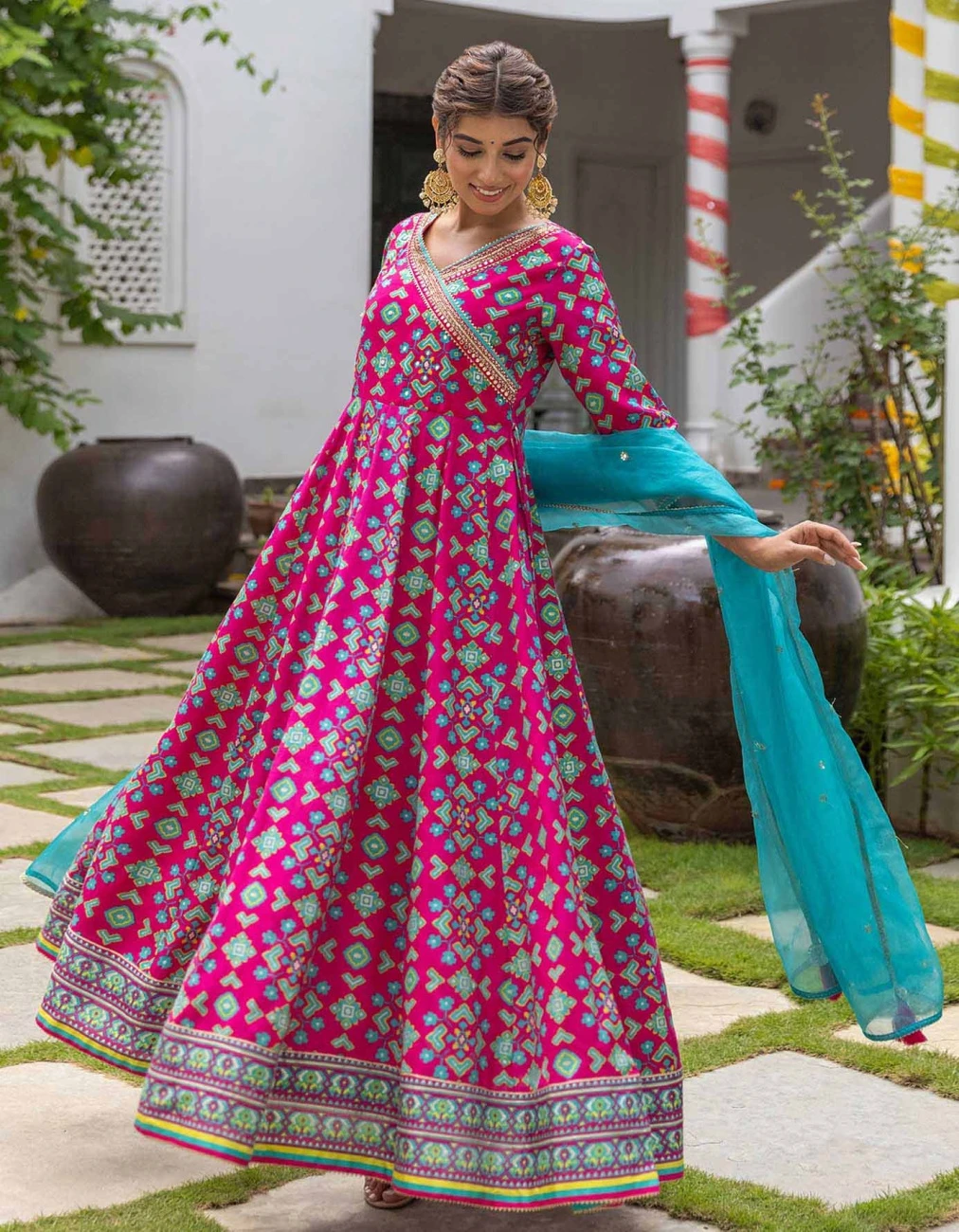- Patola Pink Anarkali Long Dress With Organza Dupatta