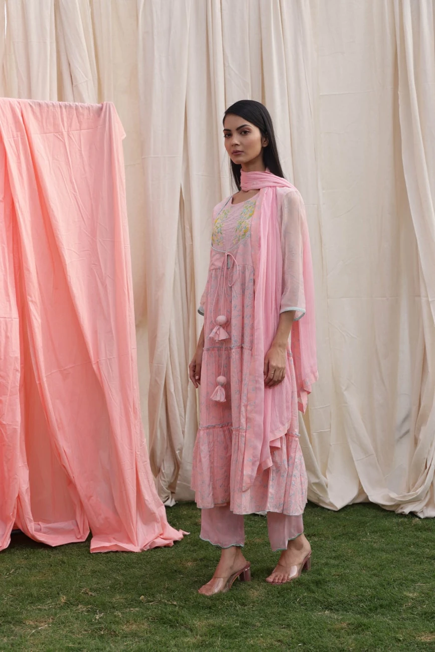 Printed Muslin Dress Has An Thread Embroidery Paired With Thread Embroidery And Thread Emb Belt