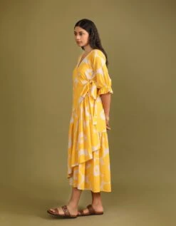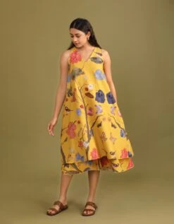 Scarlet Daisy Yellow Printed Mulmul Dress