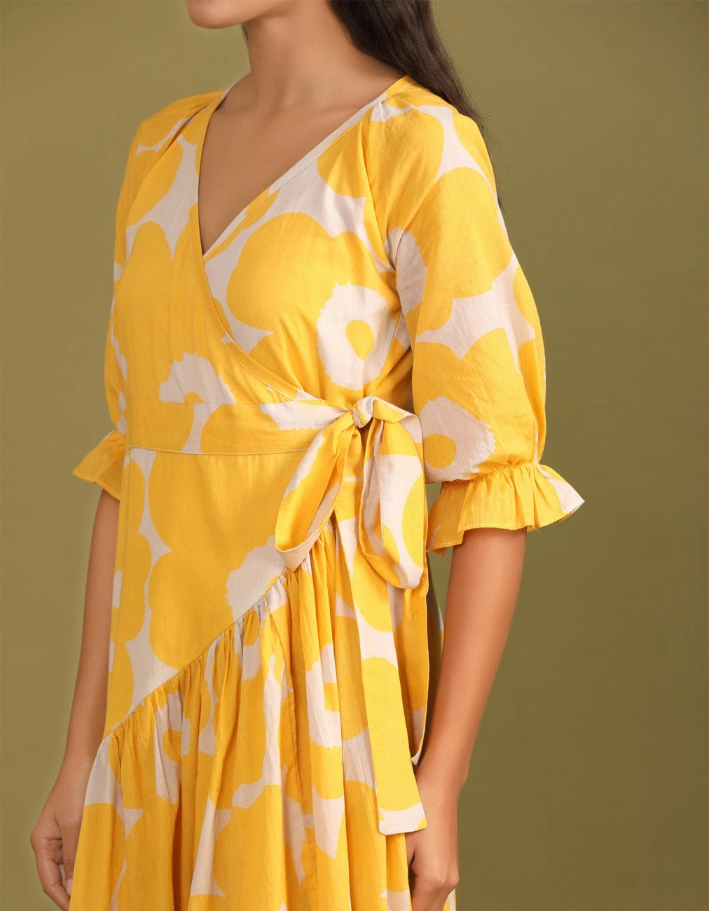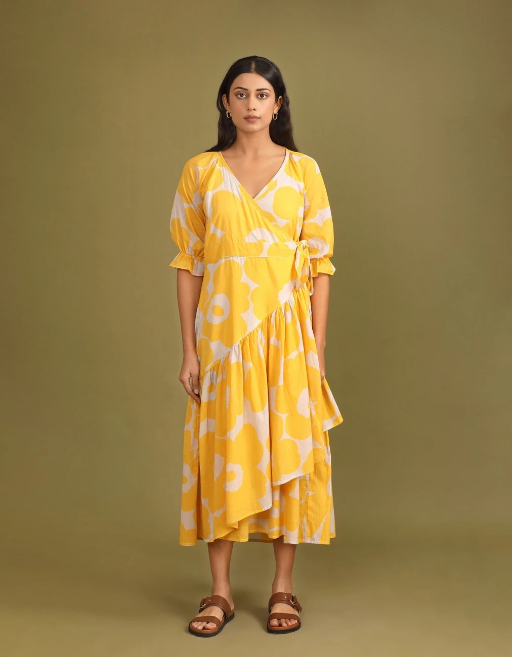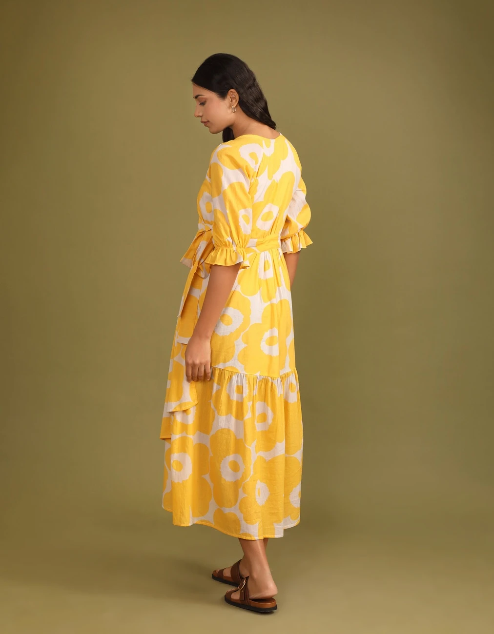 - Scarlet Daisy Yellow Printed Mulmul Dress