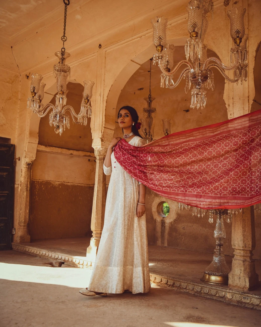 - Fabric-anarkali- chanderi pant-cotton dupatta- chanderi