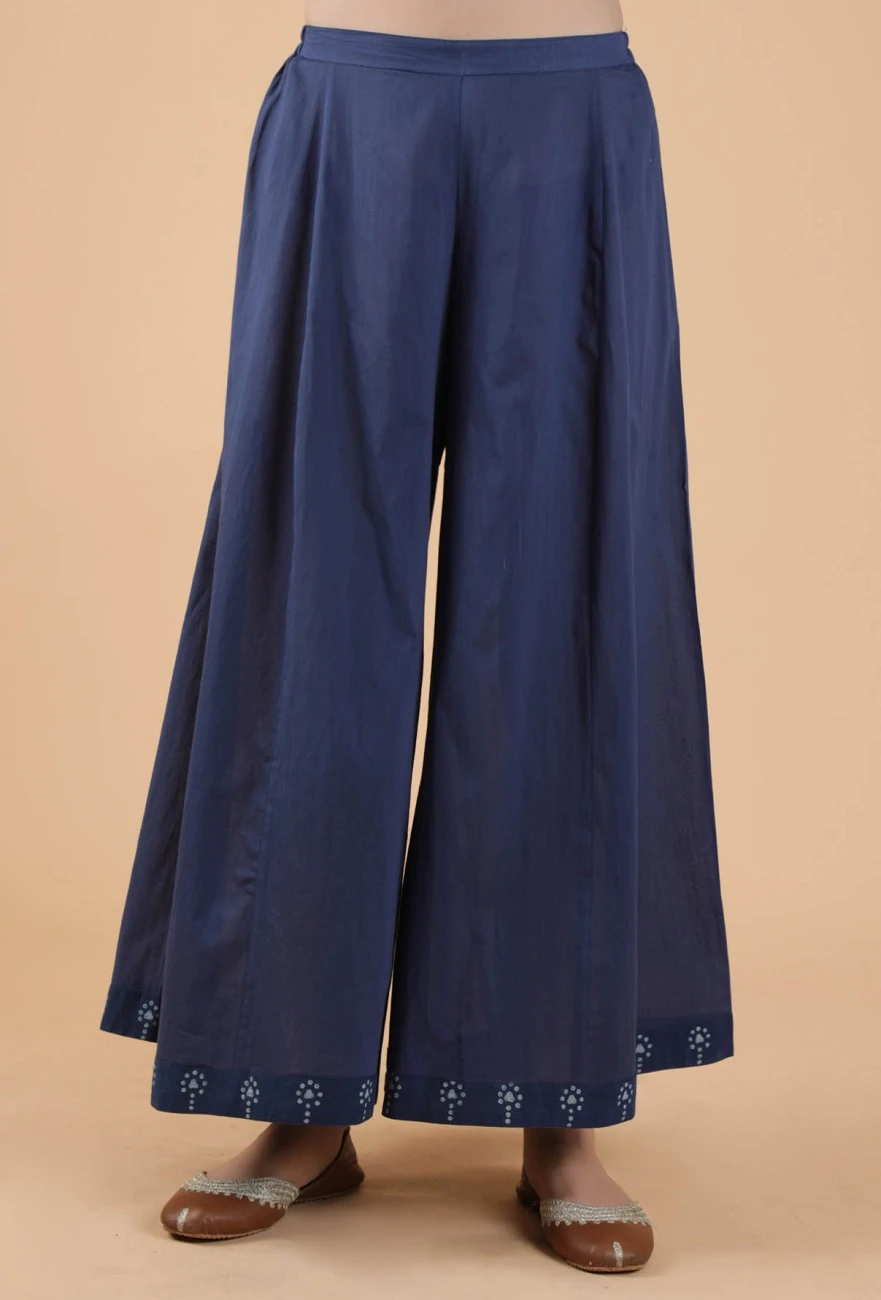 - Set Of 2:Iniya Indigo Buti & Jaal Printed Anarkali Dress & Kalidar Palazzo Pants