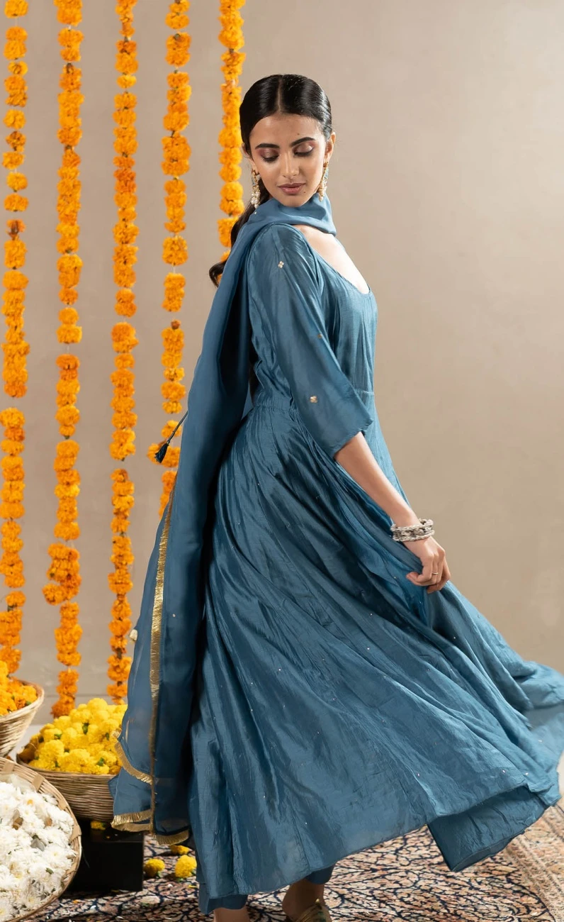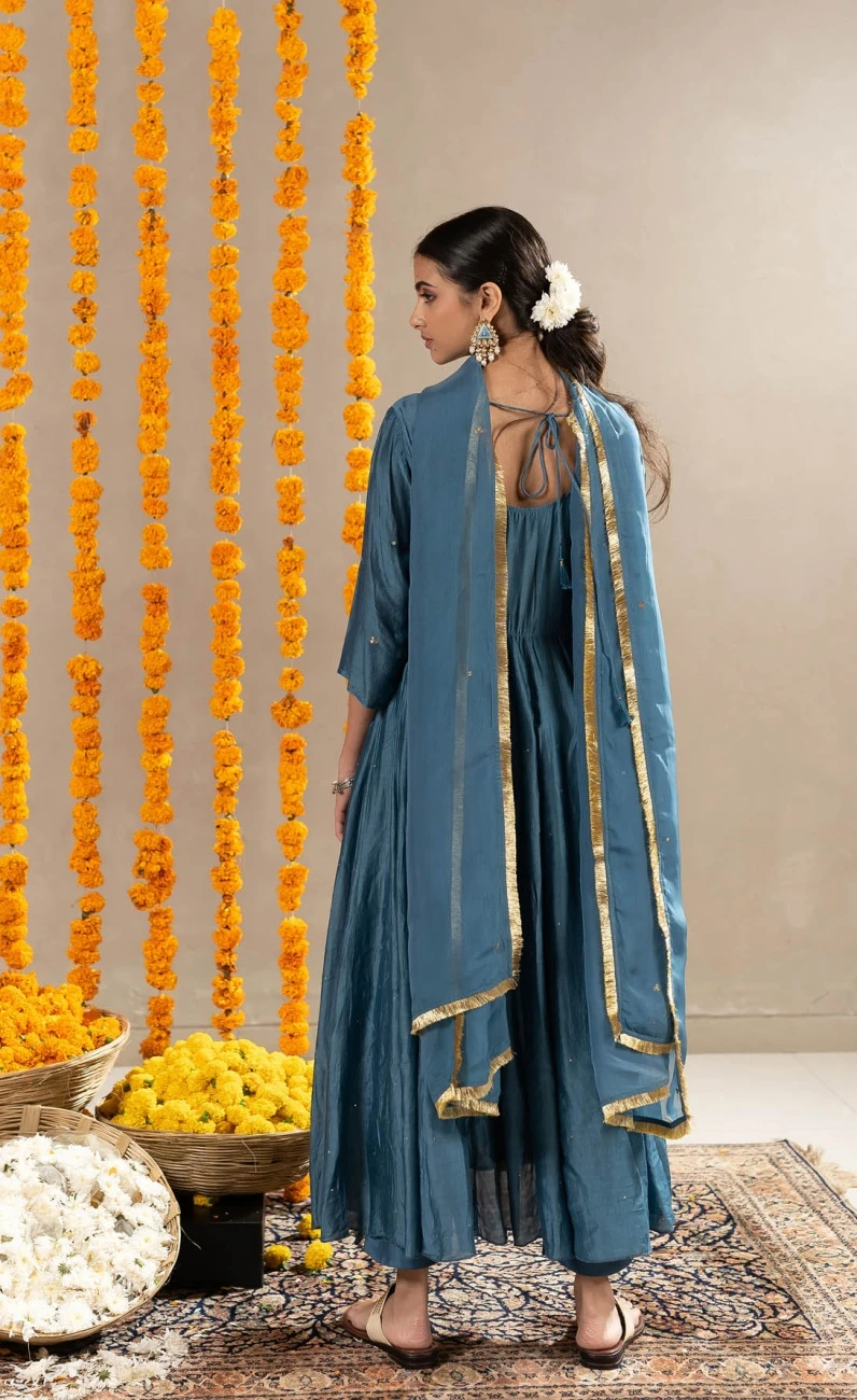 - Vedica Kali Dress, Pants And Dupatta Set – Aegean Blue