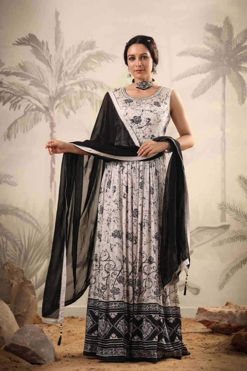 - Fabric- Dress: Chinon Silk; Dupatta: Chiffon; Lining: Crepe