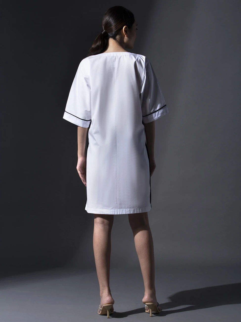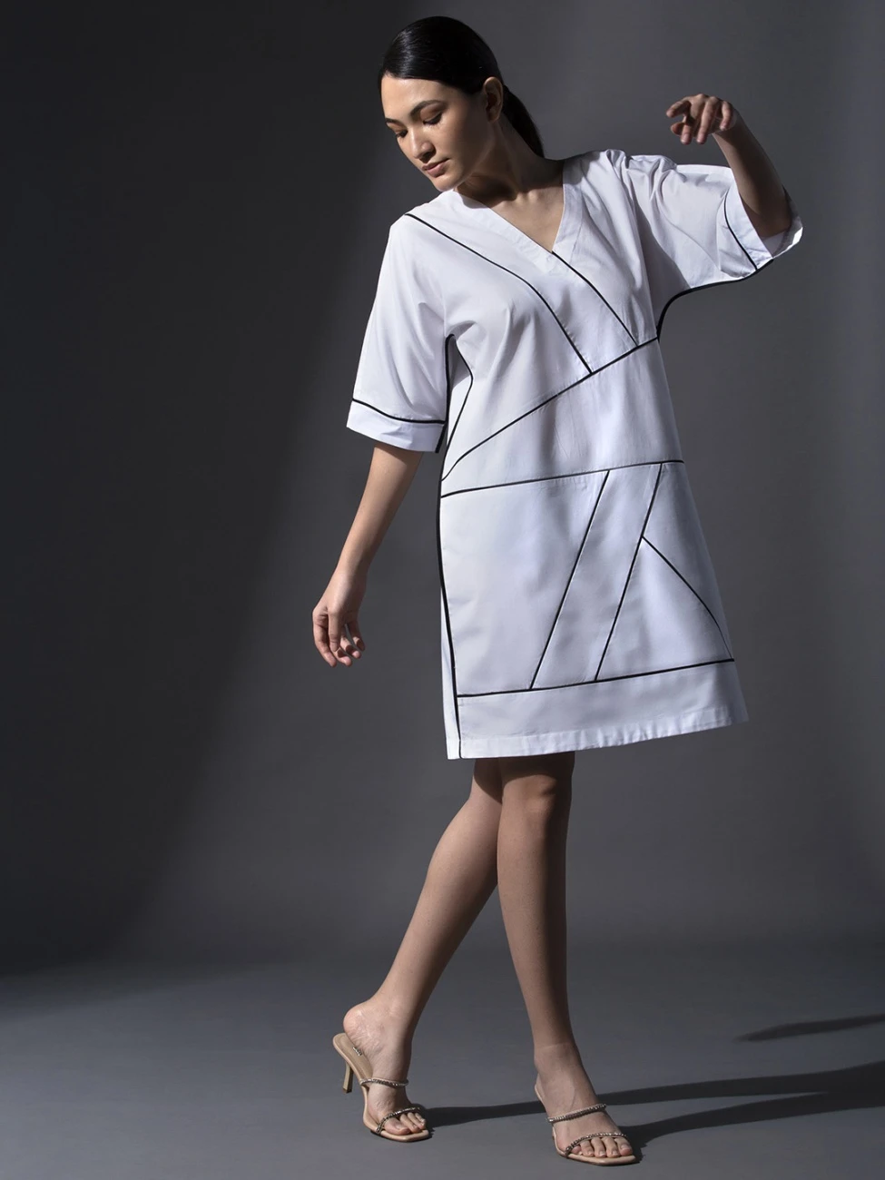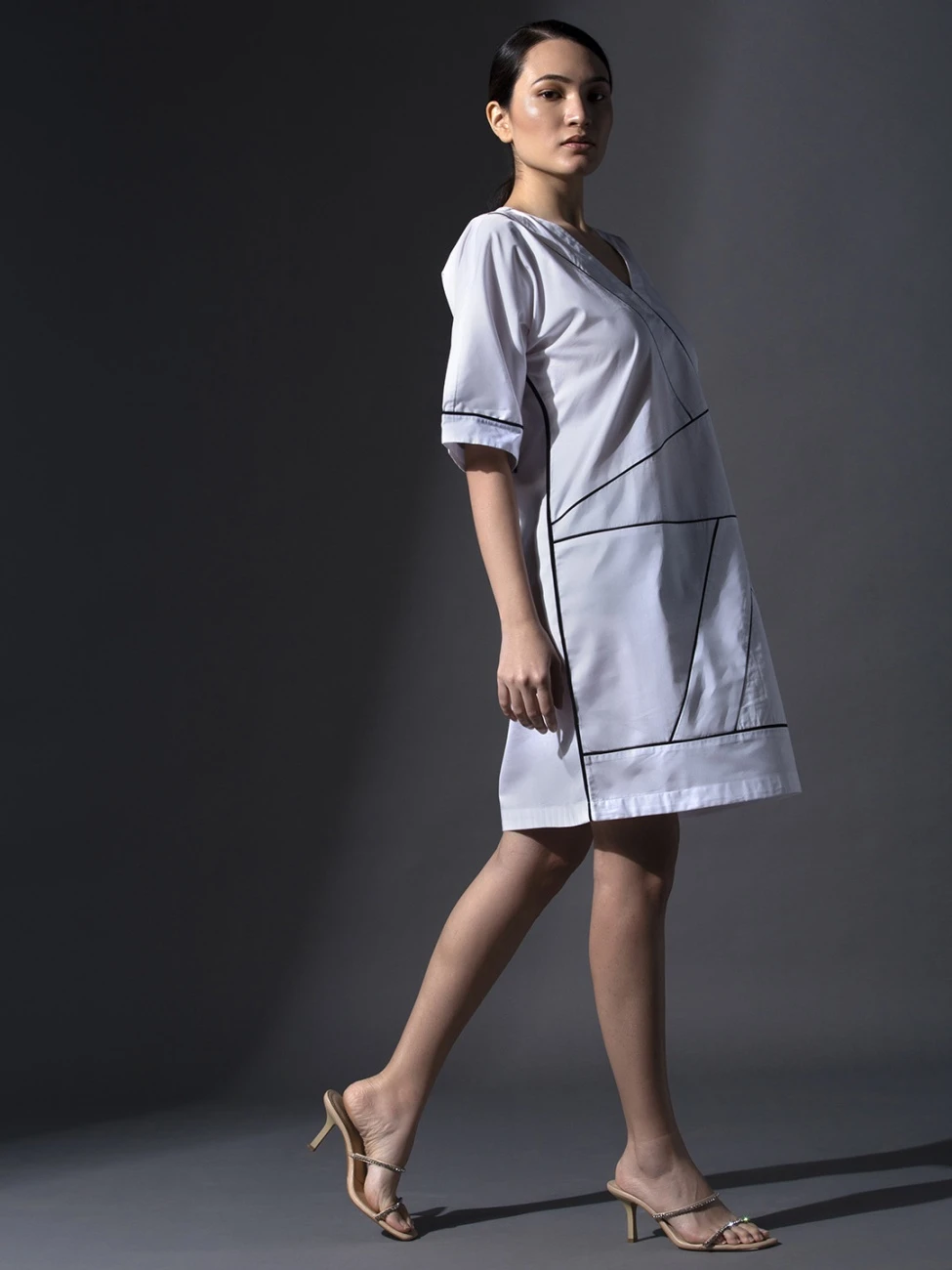 - White Pure Cotton Dimensional Patterened Shift Dress