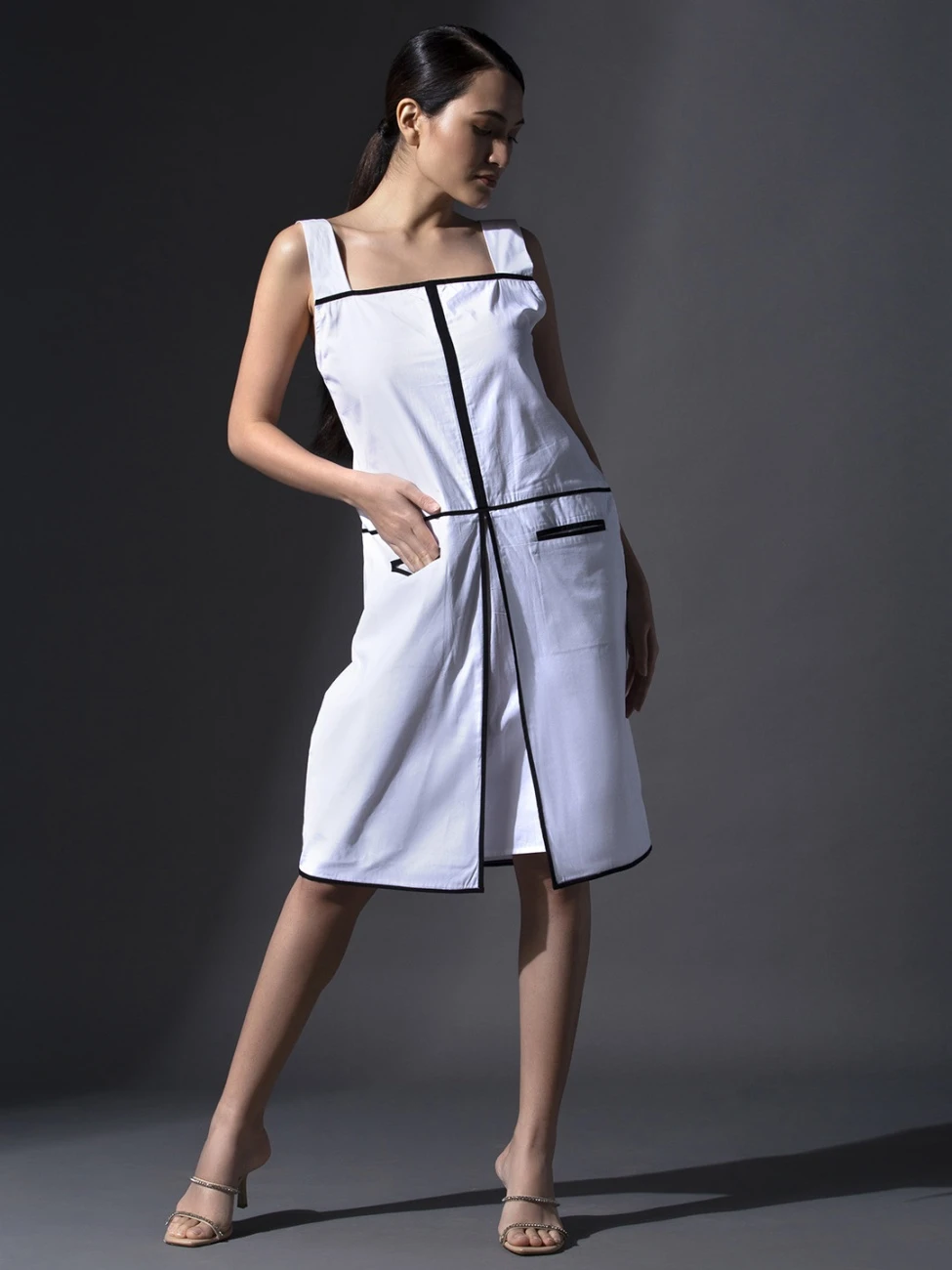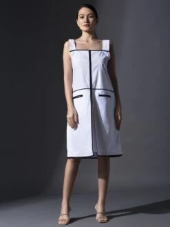 - White Pure Cotton Welt Pockets Dress